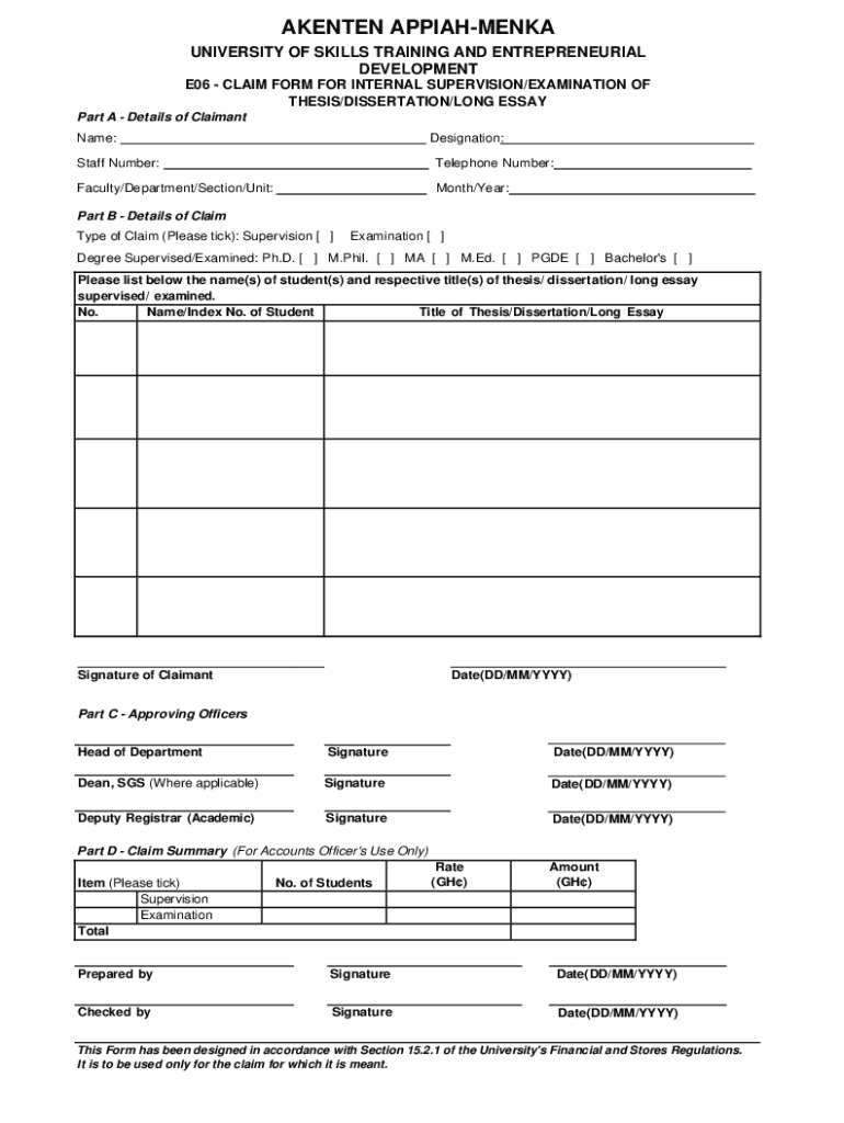 Get the free Claim Form Internal Supervision/Examination of Thesis/ ...