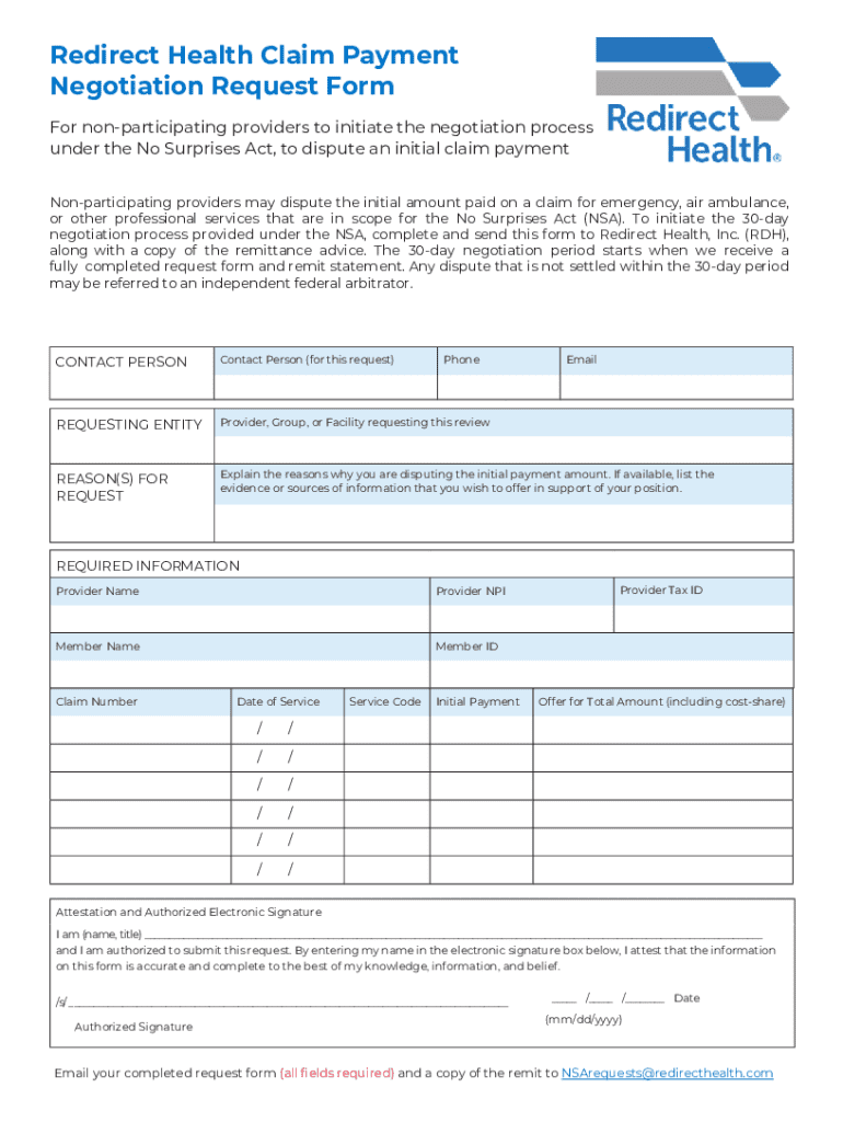 Get the free Redirect Health Claim Payment Negotiation Request Form