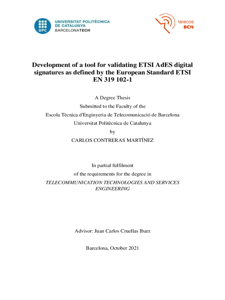 Get the free Development of a tool for validating ETSI AdES digital signatures as ... - upcommons...