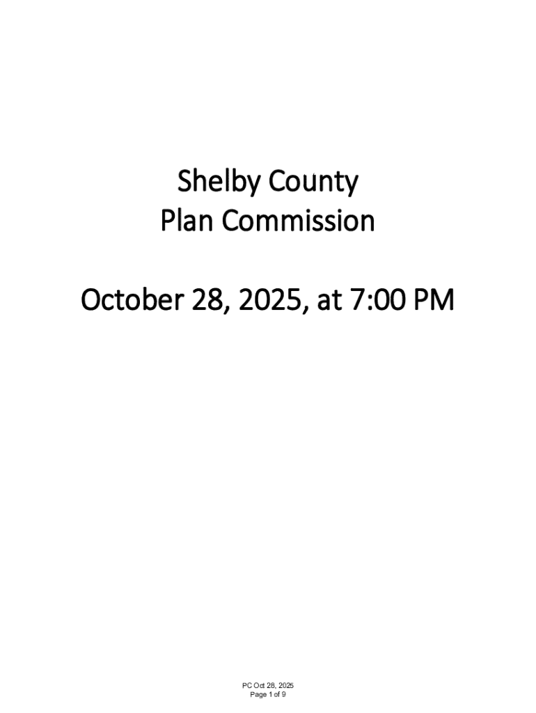 Get the free Shelby County Plan Commission October 28, 2025, at 7:00 PM