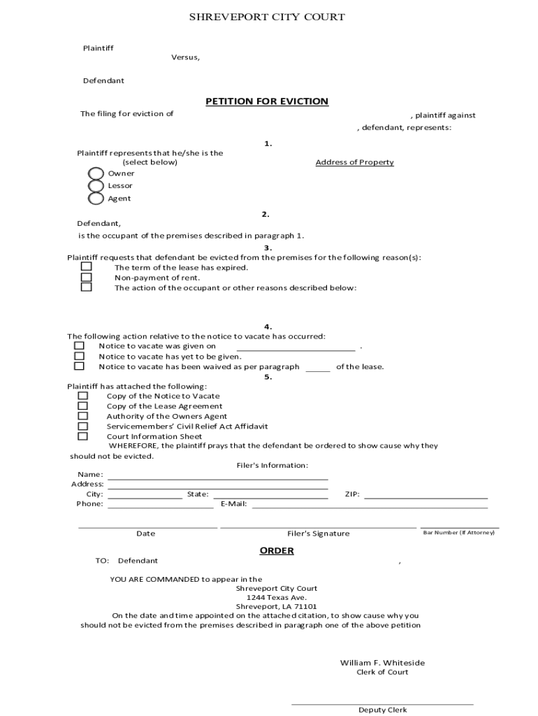 Get the free eFile Eviction Forms and InstructionsShreveport, LA