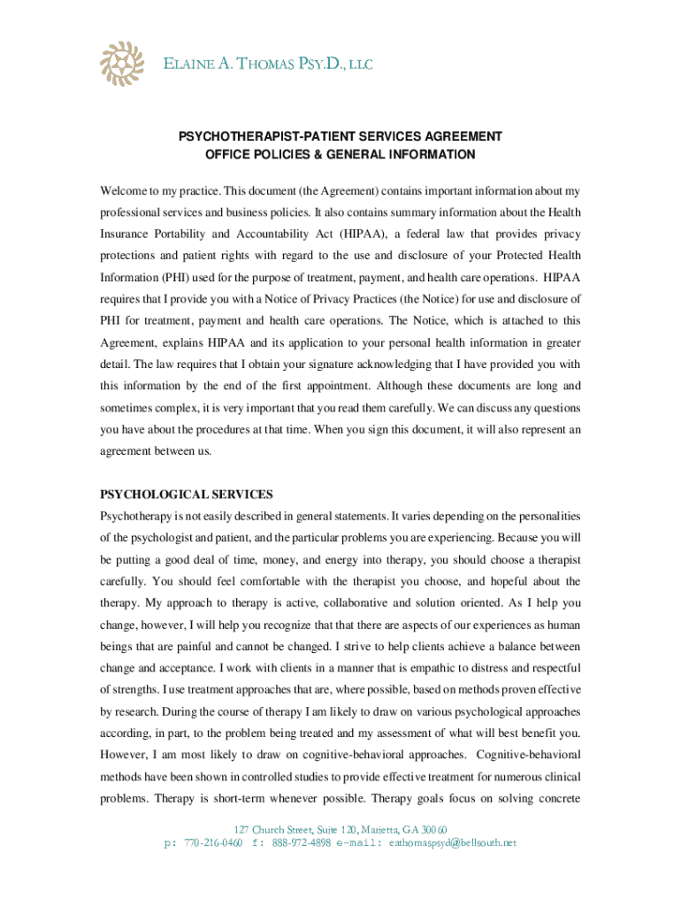 Get the free ELAINE A. THOMAS PSY.D., LLC