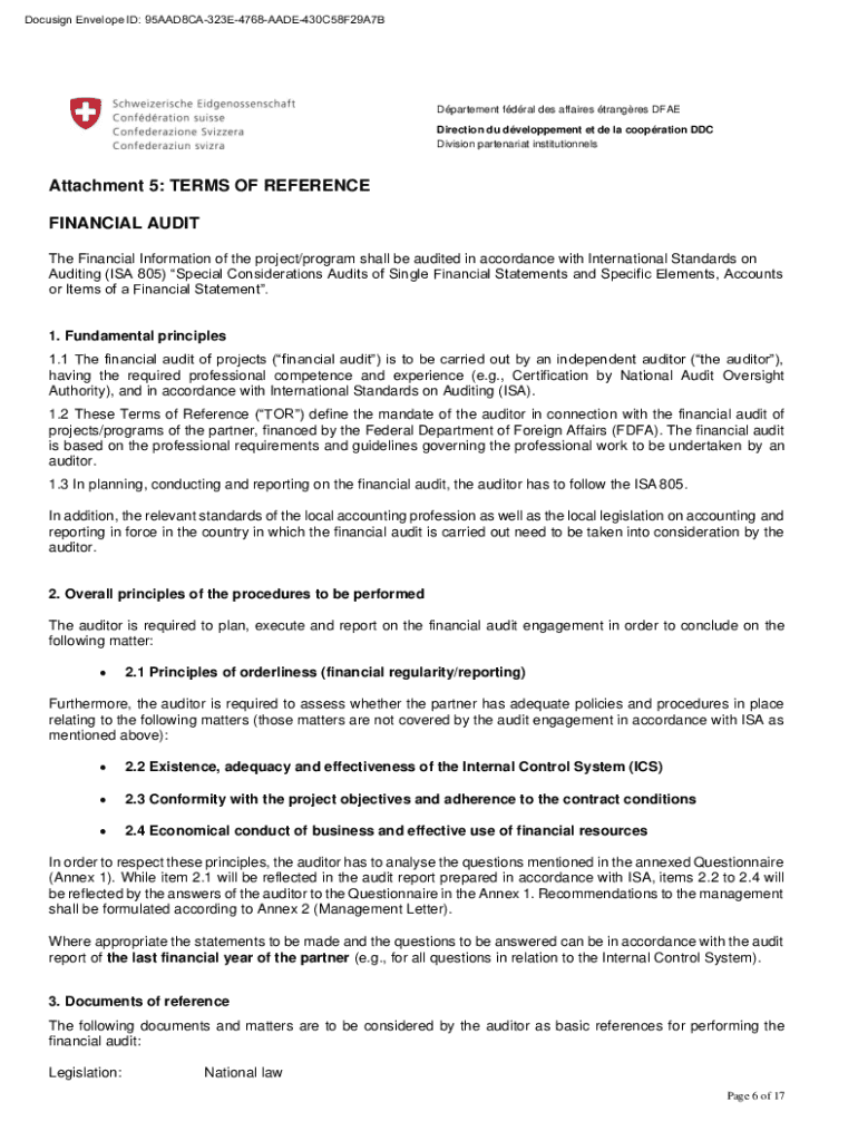 Get the free Attachment 5: TERMS OF REFERENCE FINANCIAL AUDIT