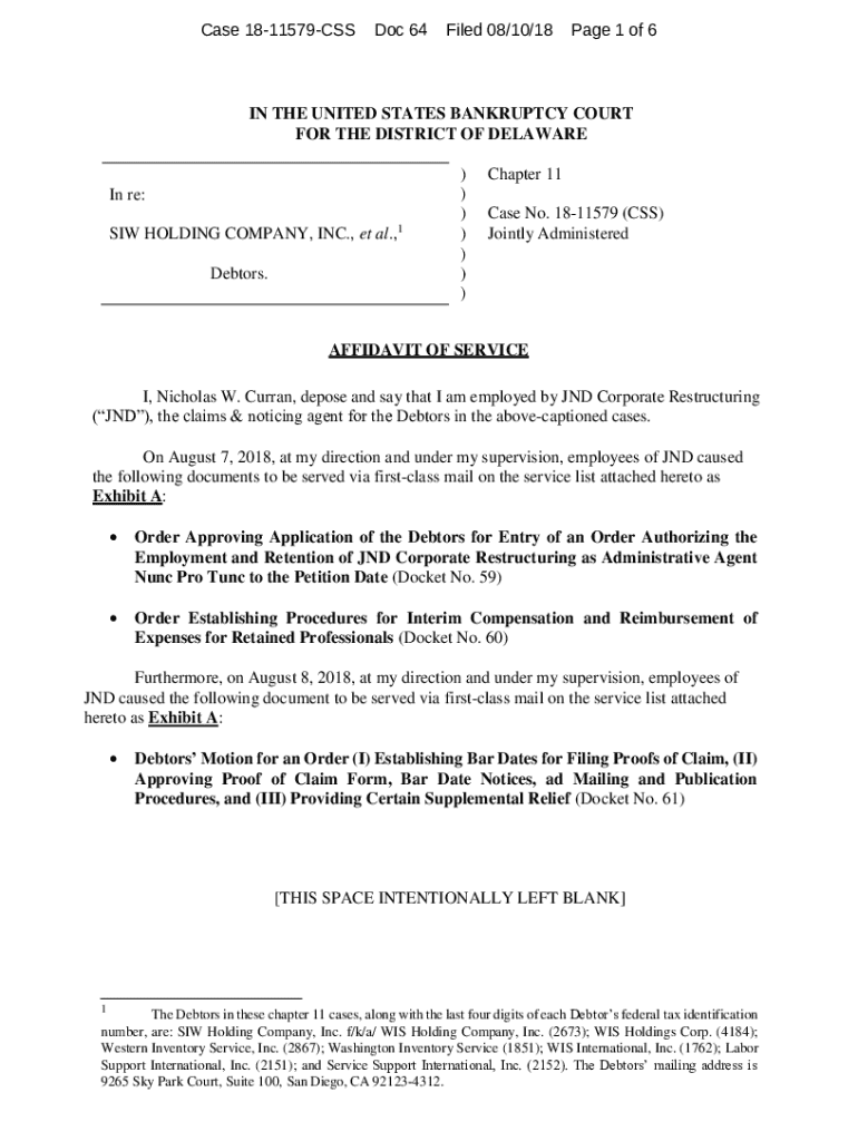 Get the free SIW HOLDING COMPANY, INC., et al.,1 Debtors.