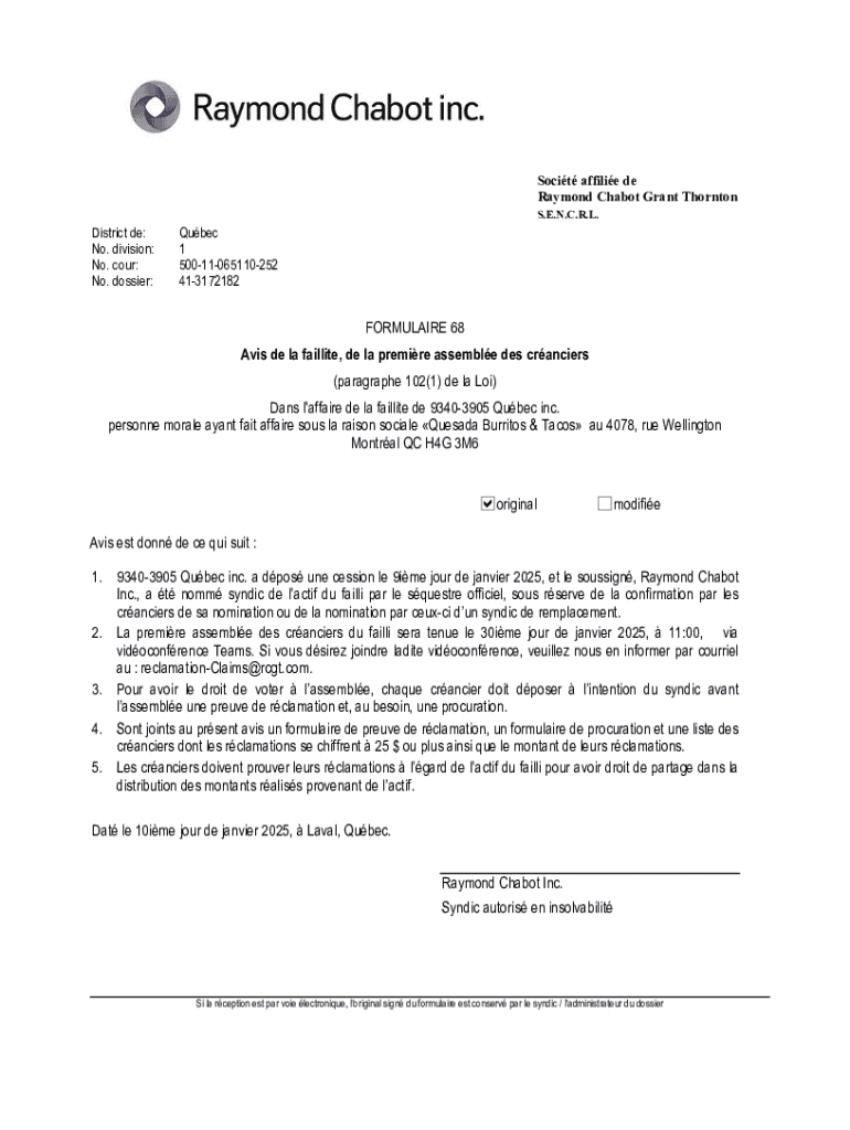 Obtenir le gratuit Avis de la faillite et de la premire assemble des cranciers B
