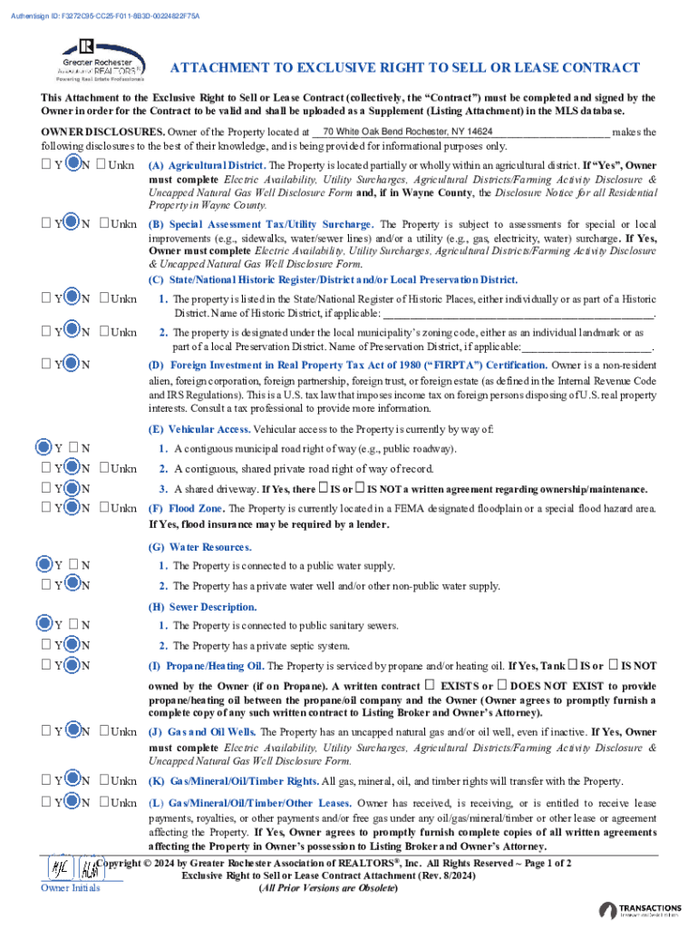 The Attachment to Exclusive Right form is a critical document in real estate transactions that associates additional terms to an Exclusive Right to Sell Agreement. This form ensures that the agent or broker has the exclusive right to sell a property while establishing what additional rights may be associated with the property—for instance, rights regarding seller disclosure or specific compensation clauses.
