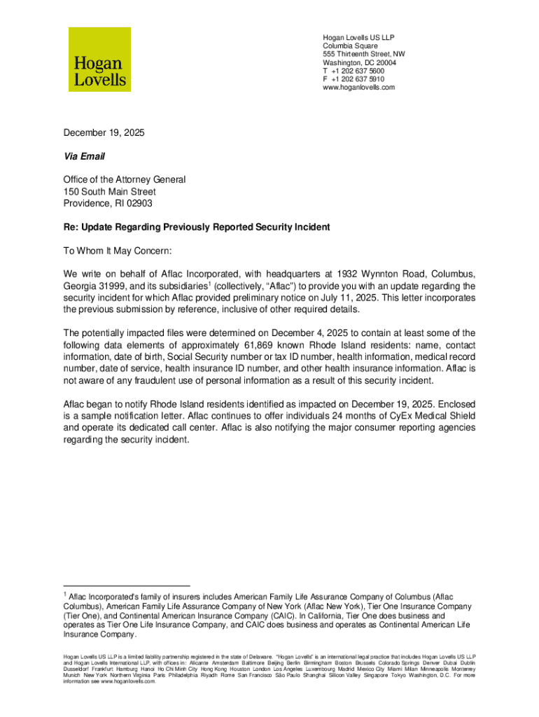 Get the free December 19, 2025 Via Email Office of the Attorney General 150 ... - riag ri