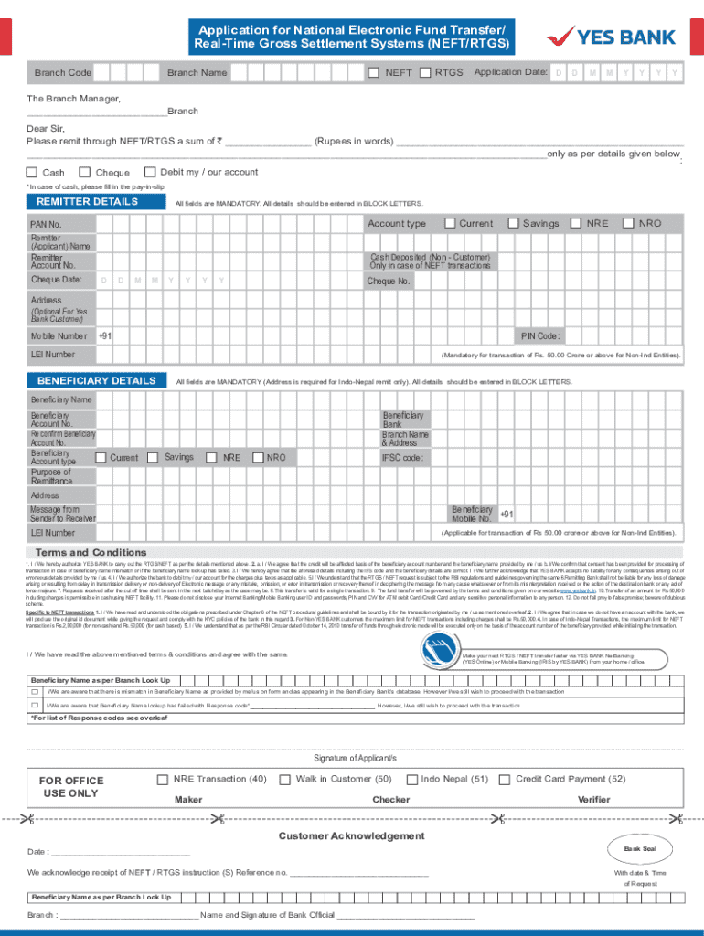 Understanding the legalities surrounding RTGS and NEFT transactions is crucial for ensuring compliance with banking regulations. Financial institutions require users to fill out forms accurately to prevent fraud and maintain the integrity of electronic transactions. Therefore, vigilance is necessary when completing the RTGS NEFT application form.