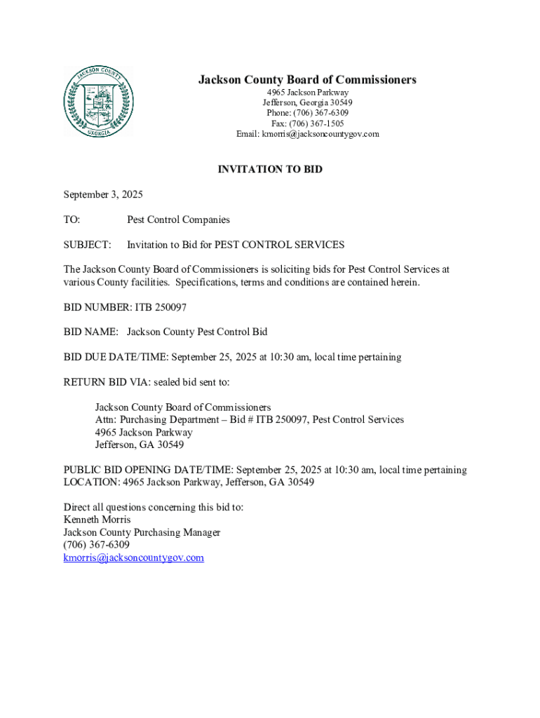 The county facility pest control form serves as a crucial tool for residents and officials to report and address pest problems. Its primary purpose is to streamline requests for pest control services, ensuring that necessary actions are taken promptly. Key stakeholders involved in this process include facility managers, local government officials, pest control teams, and the public. Each has a role in ensuring the effective management of pests within county facilities.