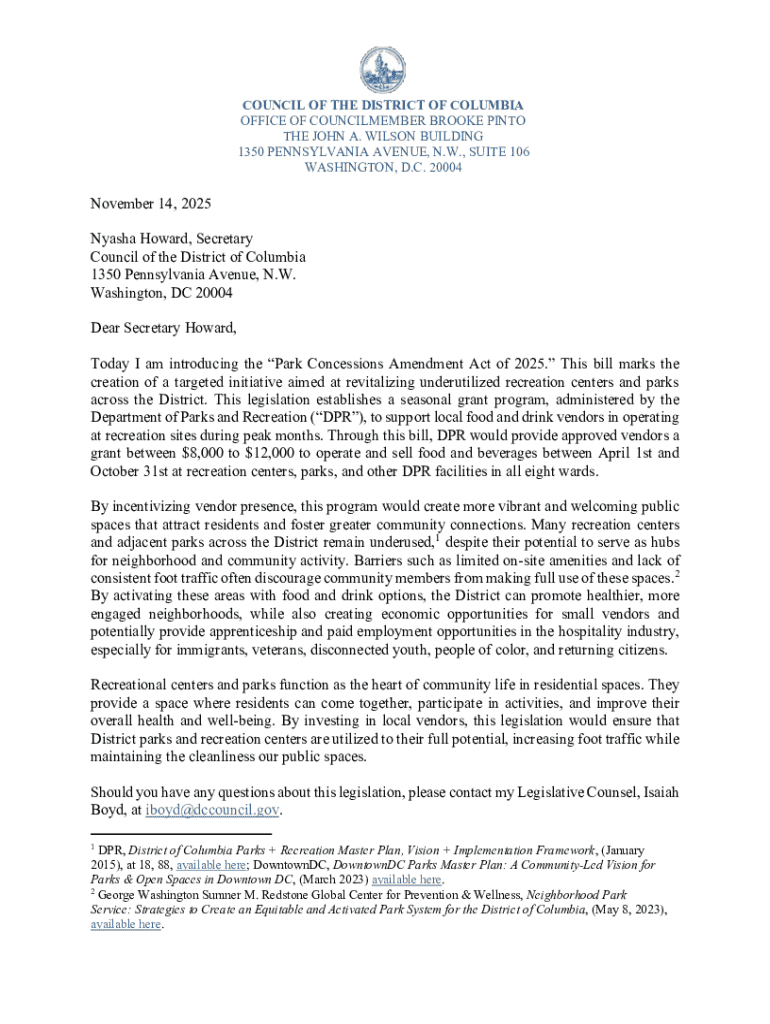 Get the free Today I am introducing the Park Concessions Amendment Act of 2025