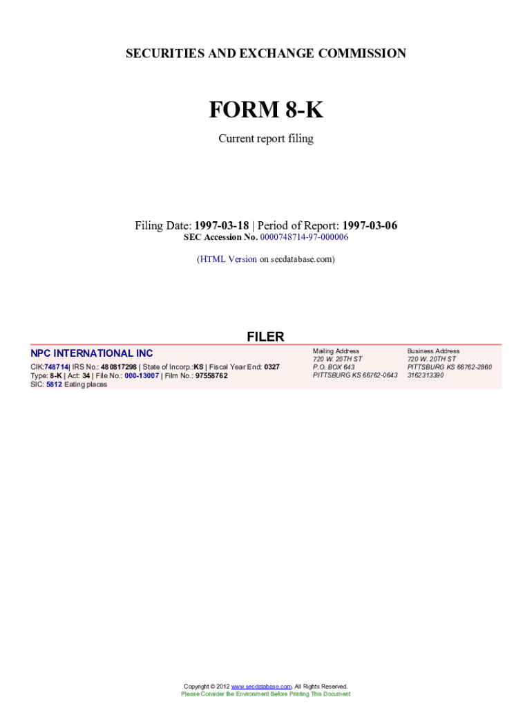 Get the free NPC INTERNATIONAL INC (Form. Accession Number