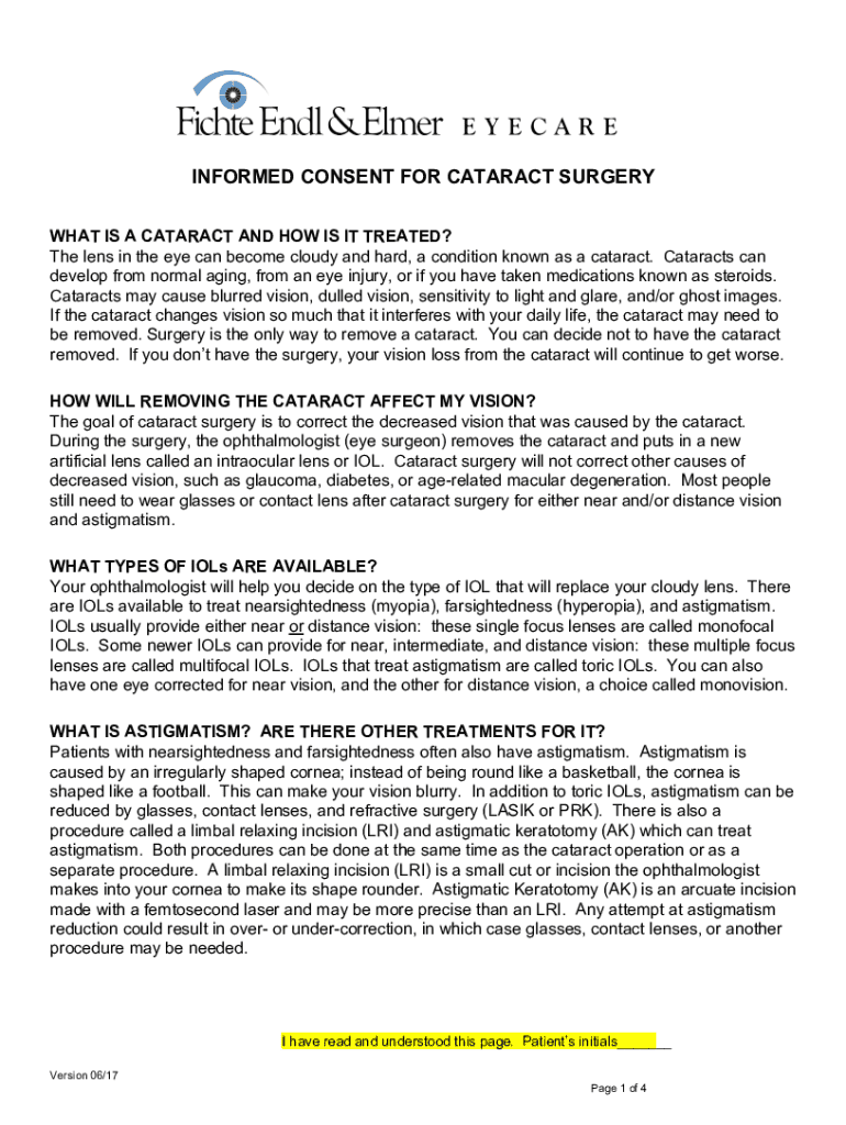Get the free Cataract Surgery Informed Consent and Lens Selection