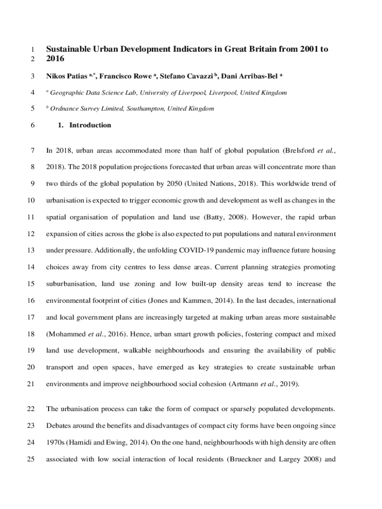 1 2Sustainable Urban Development Indicators in Great Britain from 2001 to 20163Nikos Patias a,*, Francisco Rowe a, Stefano Cavazzi b, Dani ArribasBel a4aGeographic Data Science Lab, University of