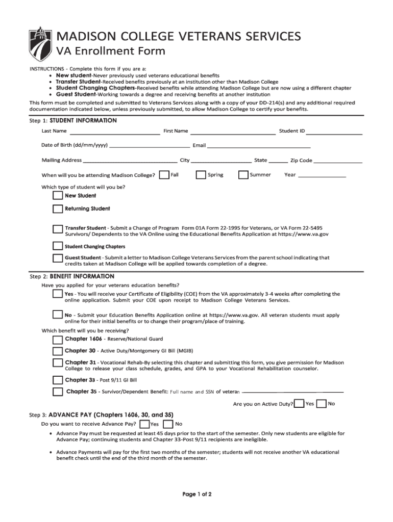 Get the free Madison College Veterans Services VA Enrollment Form.pdf