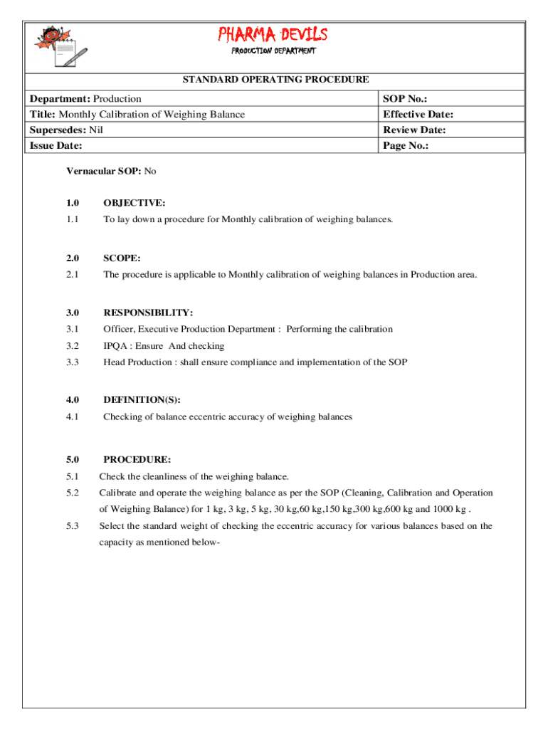 This SOP encompasses a variety of analytical instruments including, but not limited to, balances, spectrophotometers, chromatographs, and pH meters. Understanding the specific requirements for each type of instrument is critical for ensuring accurate measurements and results.