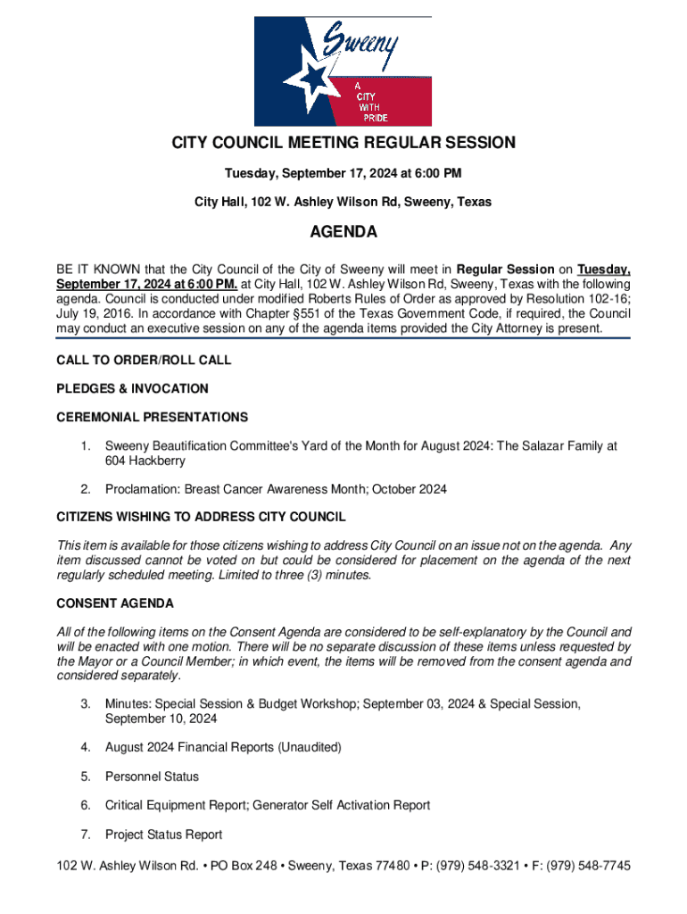 Get the free may conduct an executive session on any of the agenda items provided the City Attorn...