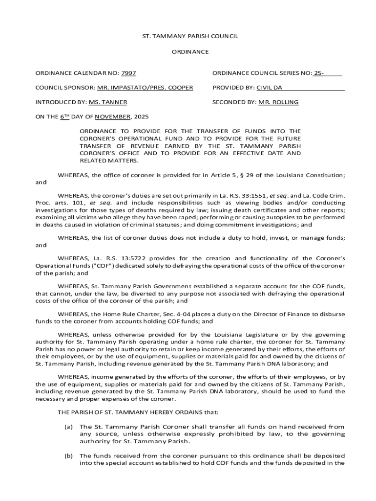 Comprehensive Guide to the Ordinance Calendar No 7997 Form