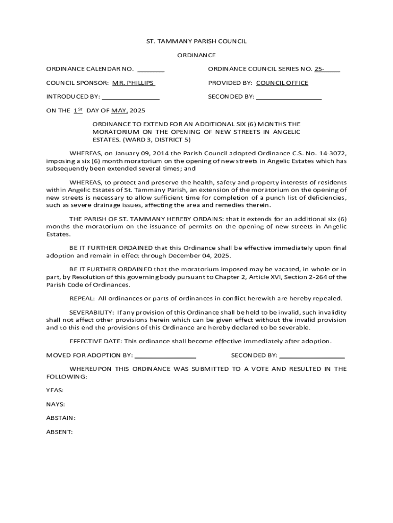 Get the free MORATORIUM ON THE OPENING OF NEW STREETS IN ANGELIC