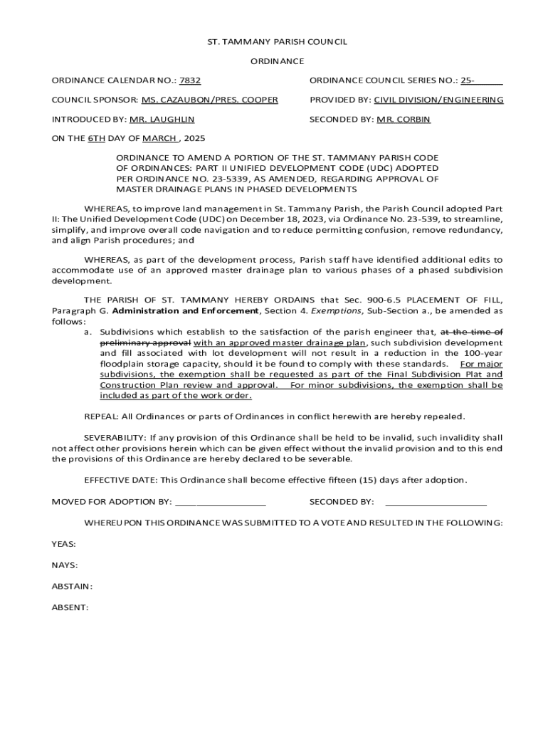 Get the free PAGE 2 OF 2 ST. TAMMANY PARISH COUNCIL ORDINANCE ...