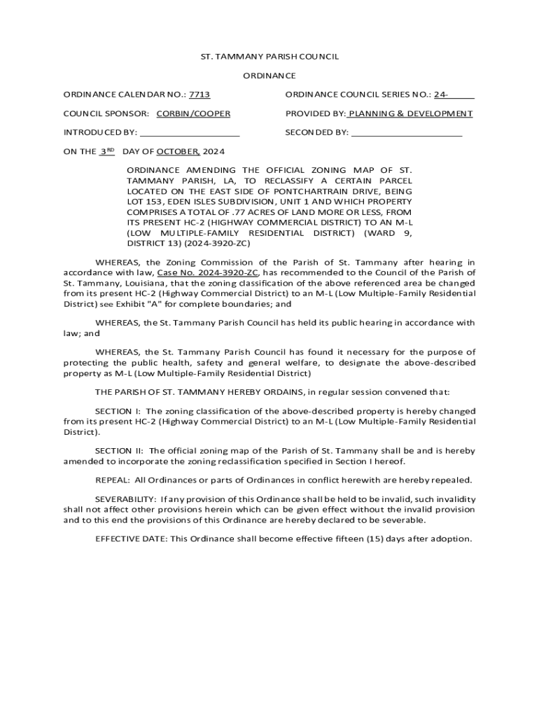 Get the free TAMMANY PARISH, LA, TO RECLASSIFY A CERTAIN PARCEL