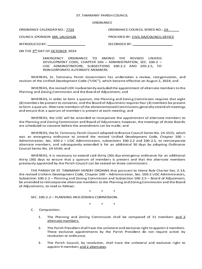 Get the free EMERGENCY ORDINANCE TO AMEND THE REVISED UNIFIED