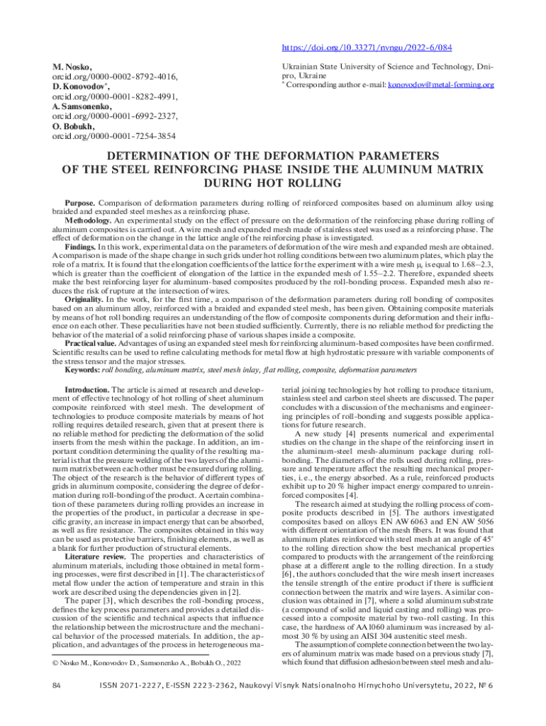 Get the free determination of the deformation parameters of the steel ...