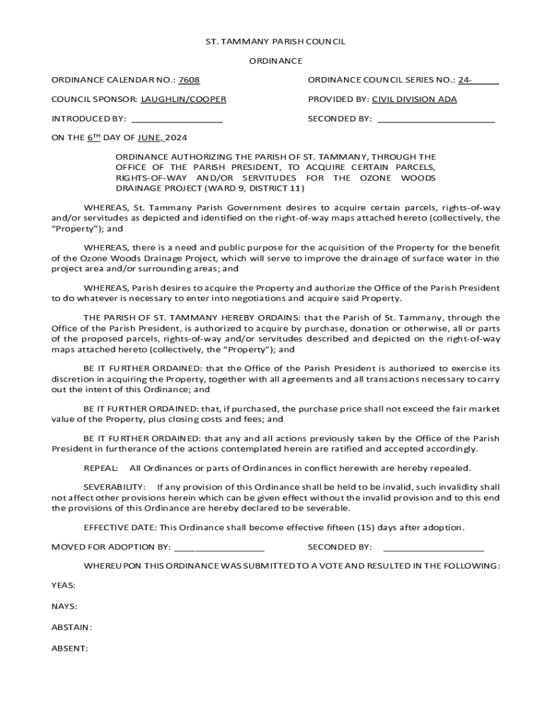 Get the free OFFICE OF THE PARISH PRESIDENT, TO ACQUIRE CERTAIN PARCELS,