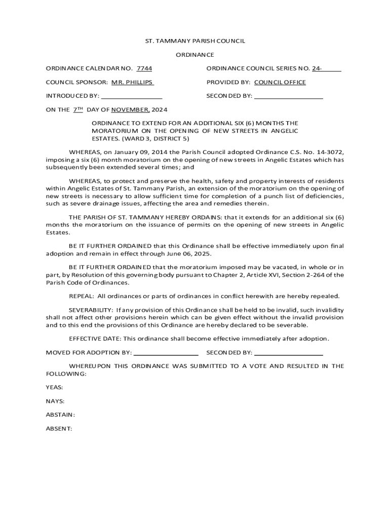Get the free WHEREAS, on January 09, 2014 the Parish Council adopted Ordinance C