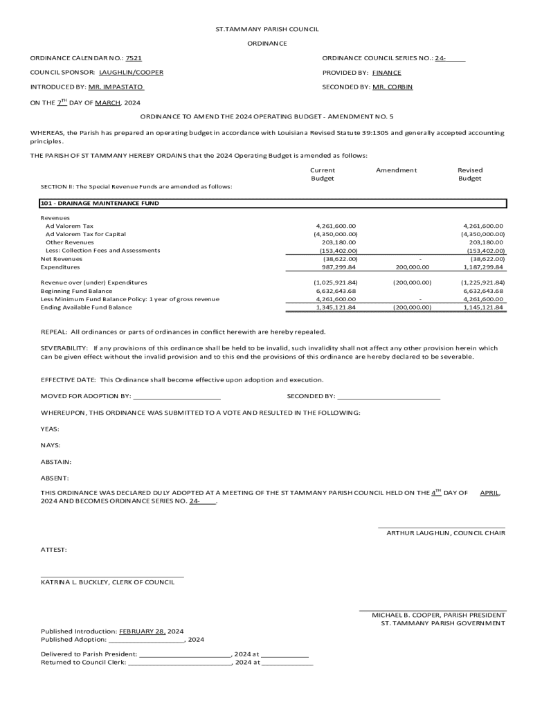 The 7521 ordinance council series form is a key document used by local governing bodies to propose and record ordinances that impact community regulations and policies. This form serves not only as a vessel for introducing new legislation but also as a formal record of discussions and decisions made during council meetings. Its significance lies in its role in ensuring transparency and accountability in local governance.