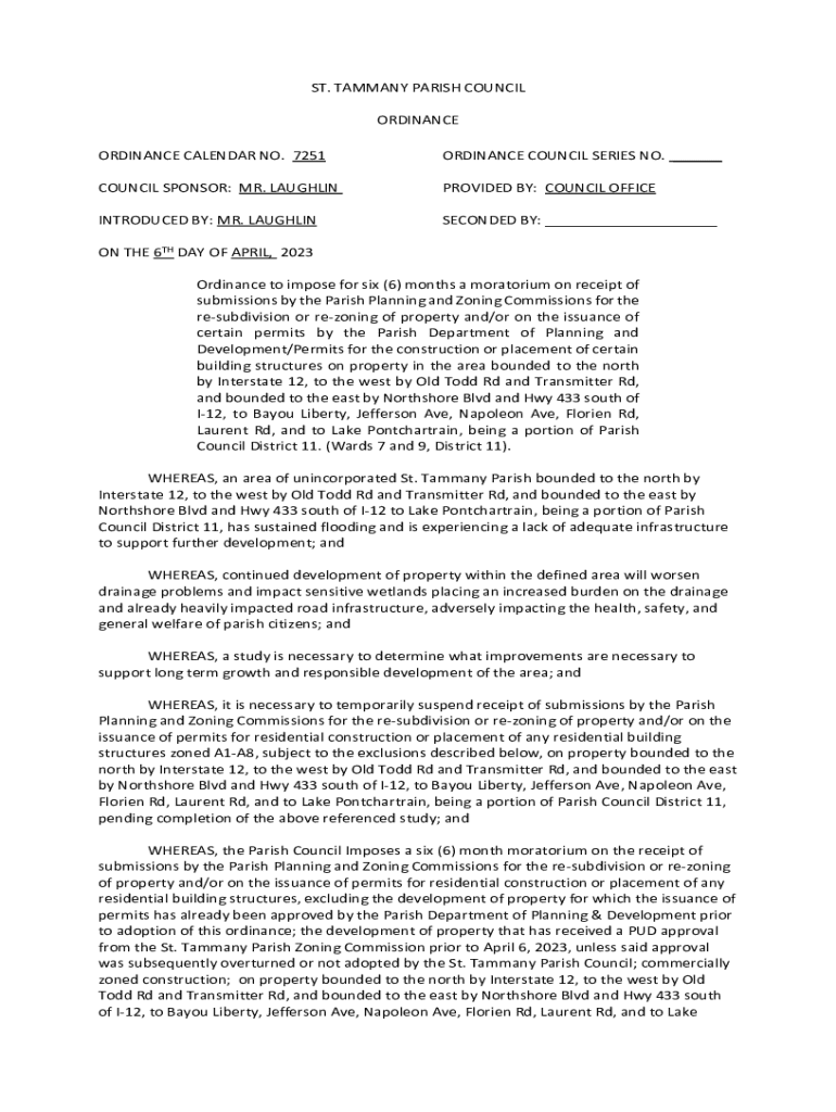 ST. TAMMANY PARISH COUNCIL ORDINANCE ORDINANCE CALENDAR NO. 7251ORDINANCE COUNCIL SERIES NO. ___COUNCIL SPONSOR: MR. LAUGHLINPROVIDED BY: COUNCIL OFFICEINTRODUCED BY: MR. LAUGHLINSECONDED BY: ___ON