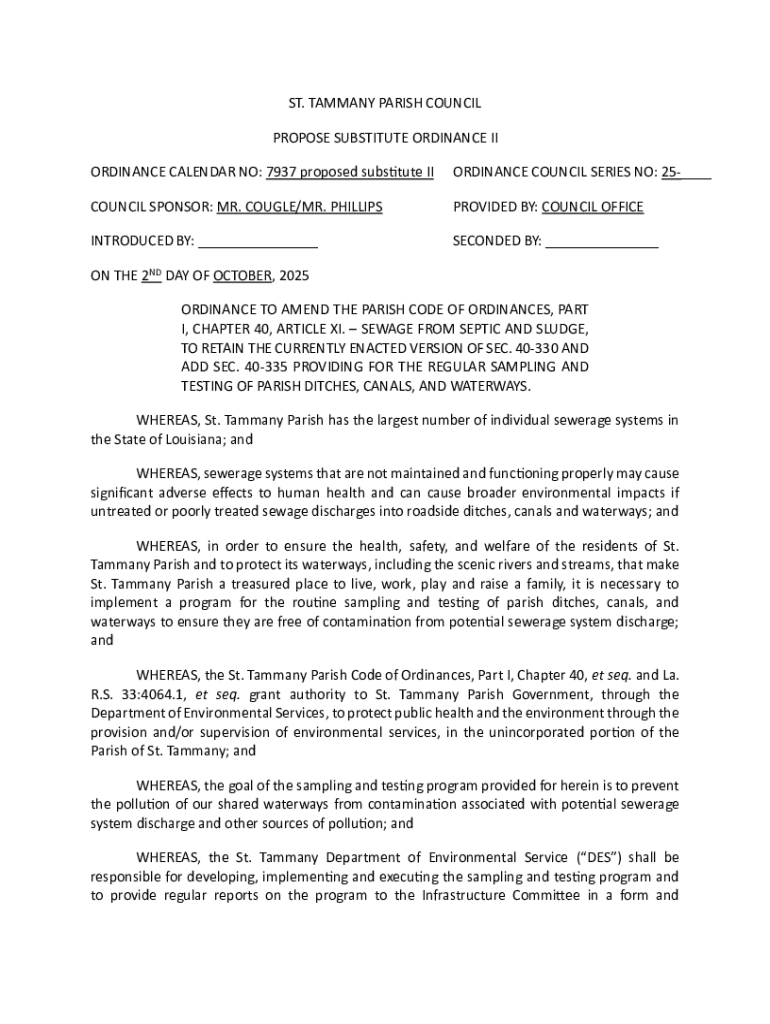 Get the free PROPOSE SUBSTITUTE ORDINANCE II