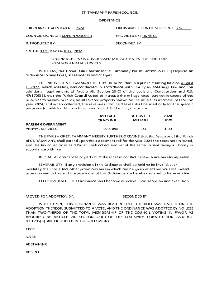 In the context of regulatory and compliance frameworks, the importance of the Ordinance Calendar No 7624 cannot be overstated. By promoting a standard procedure for assessing, drafting, and passing ordinances, stakeholders such as parish councils, local governments, and community members can engage effectively with proposed regulations that affect their lives and environments.