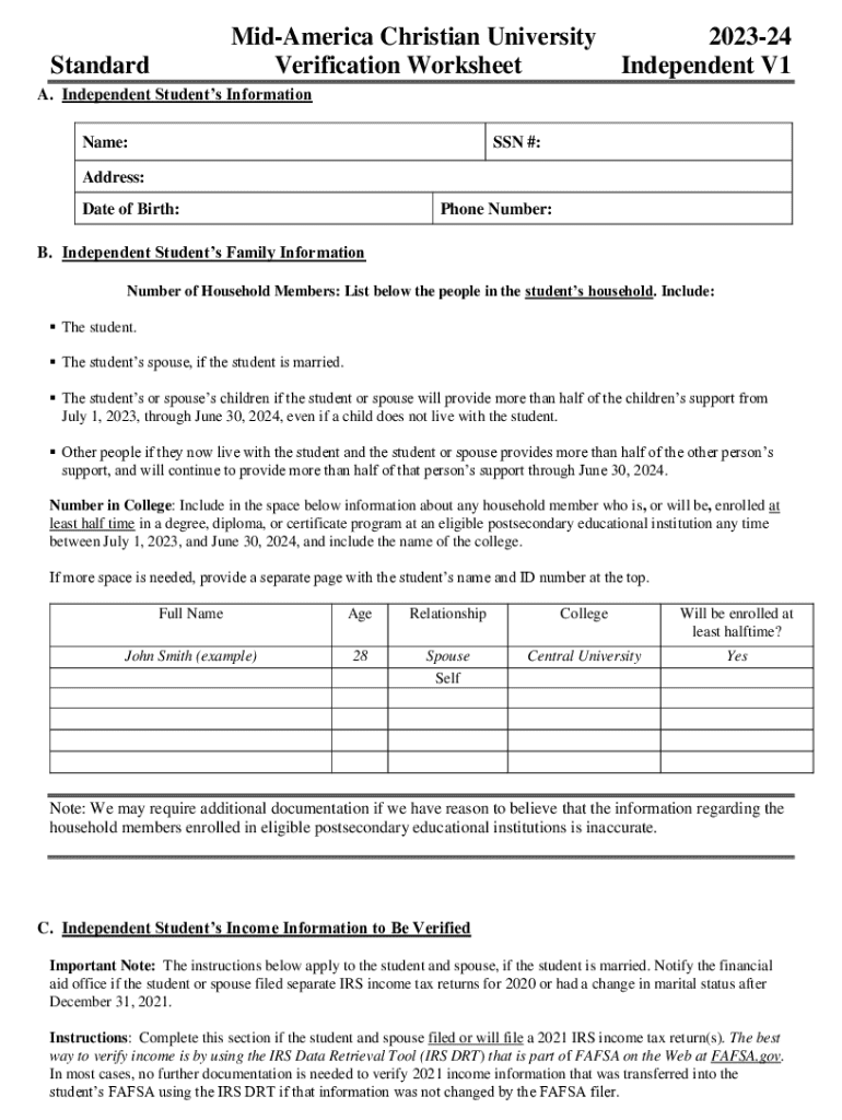The ind-23-24-v1-standard-verification-worksheetpdf form serves as a crucial document in various institutional processes, particularly for individuals applying for financial aid and federal grants. Its purpose is to help institutions validate the information submitted by applicants regarding their financial situation and household. This form becomes essential when there are discrepancies between the data provided on a Free Application for Federal Student Aid (FAFSA) and the official records, making its accurate completion vital for a smooth verification process.