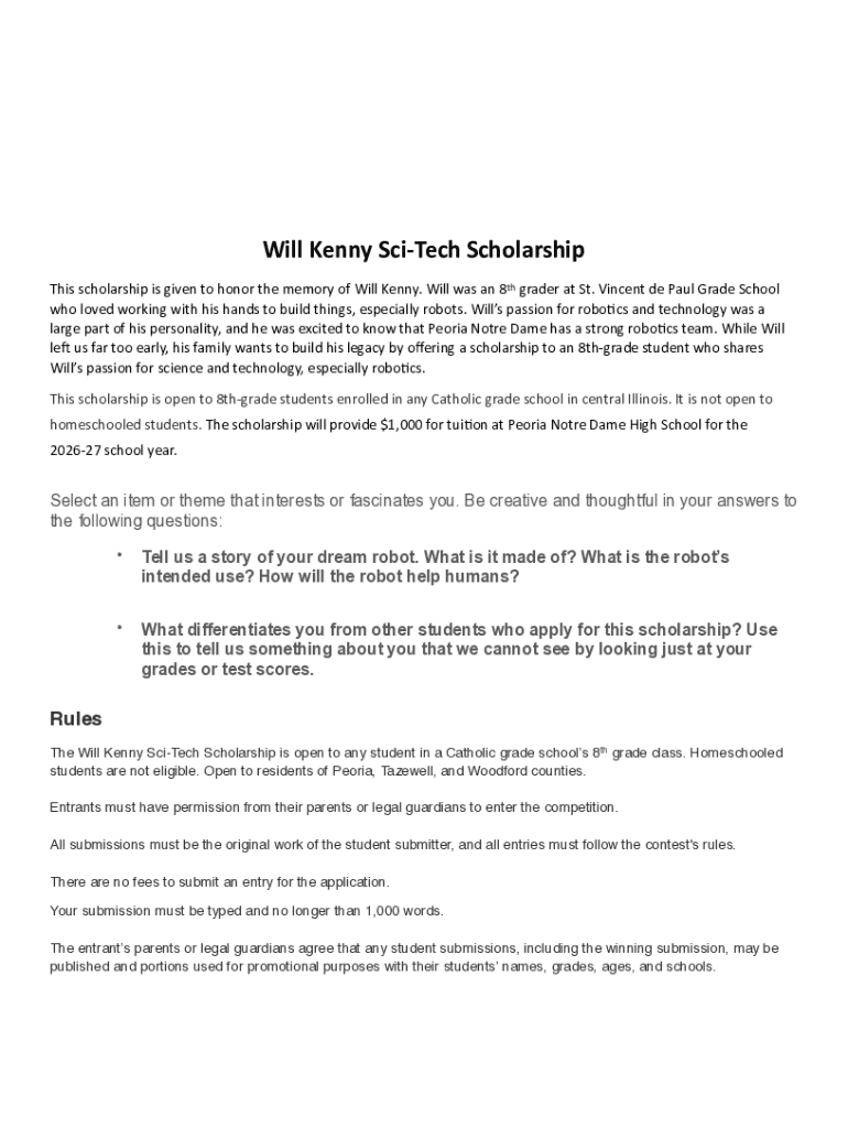 Get the free Will Kenny Sci Tech Scholarship form 2026-27