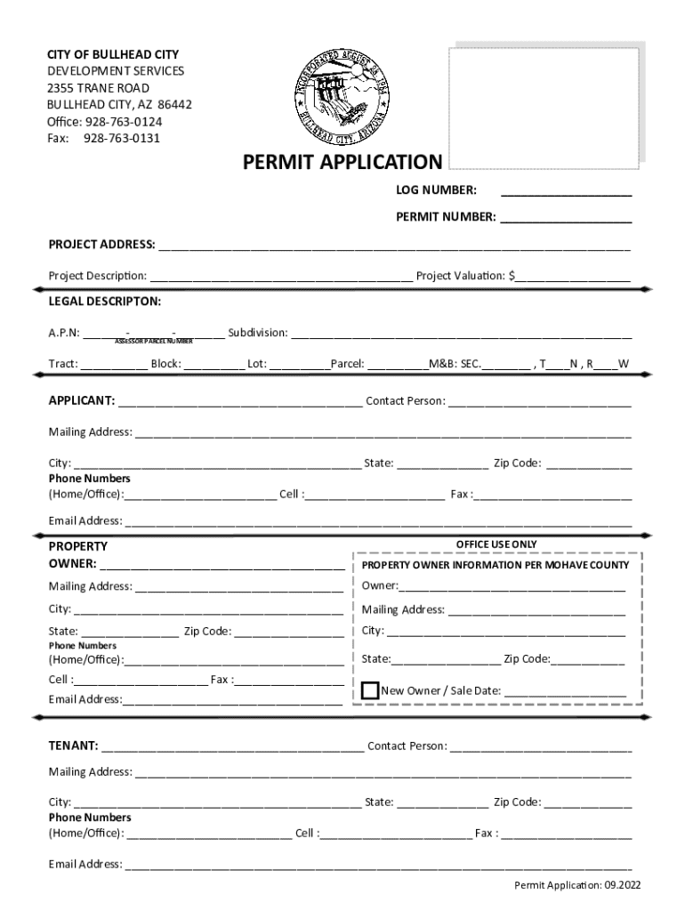 Get the free Planning Permit Forms and Information - Bullhead City