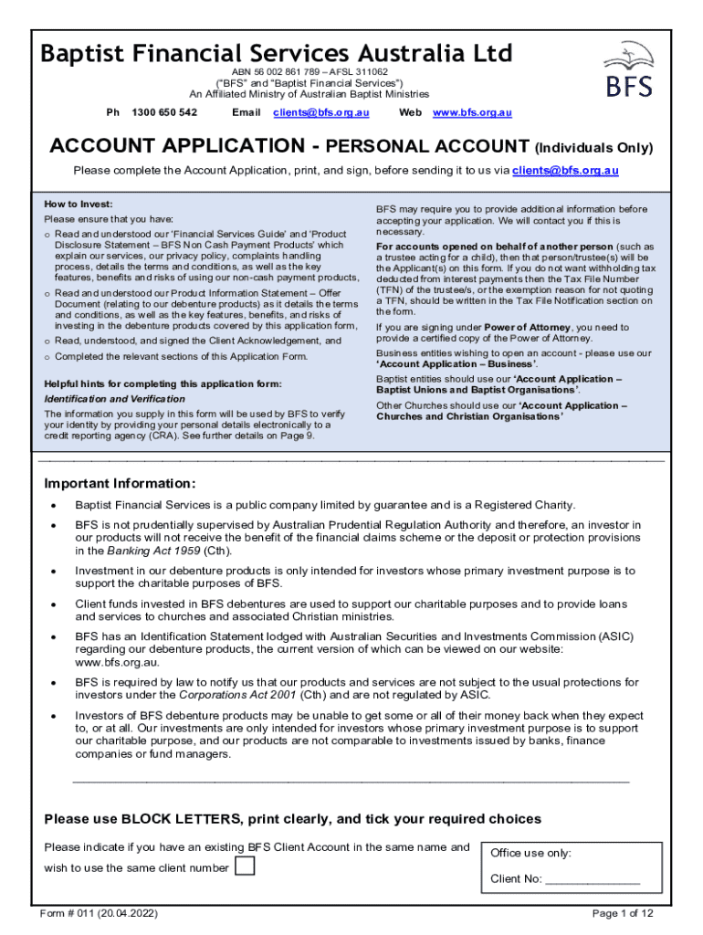 Get the free Opening a BFS Account For Personal Investors