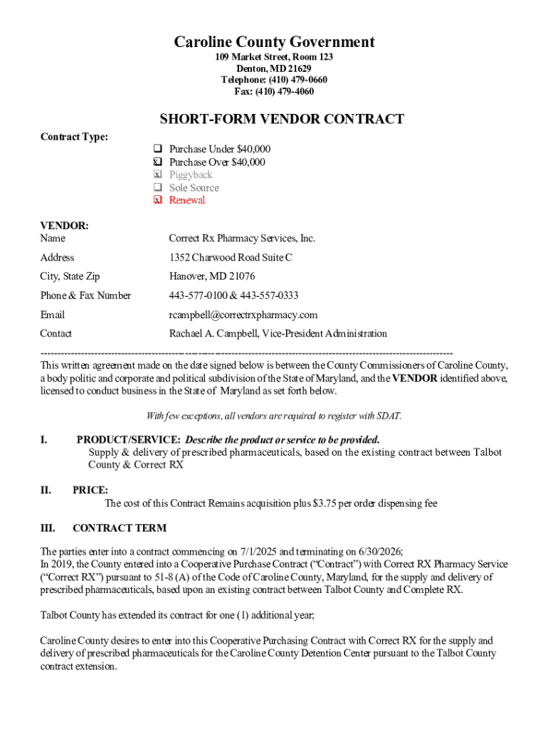 How to fill out short-form vendor contract