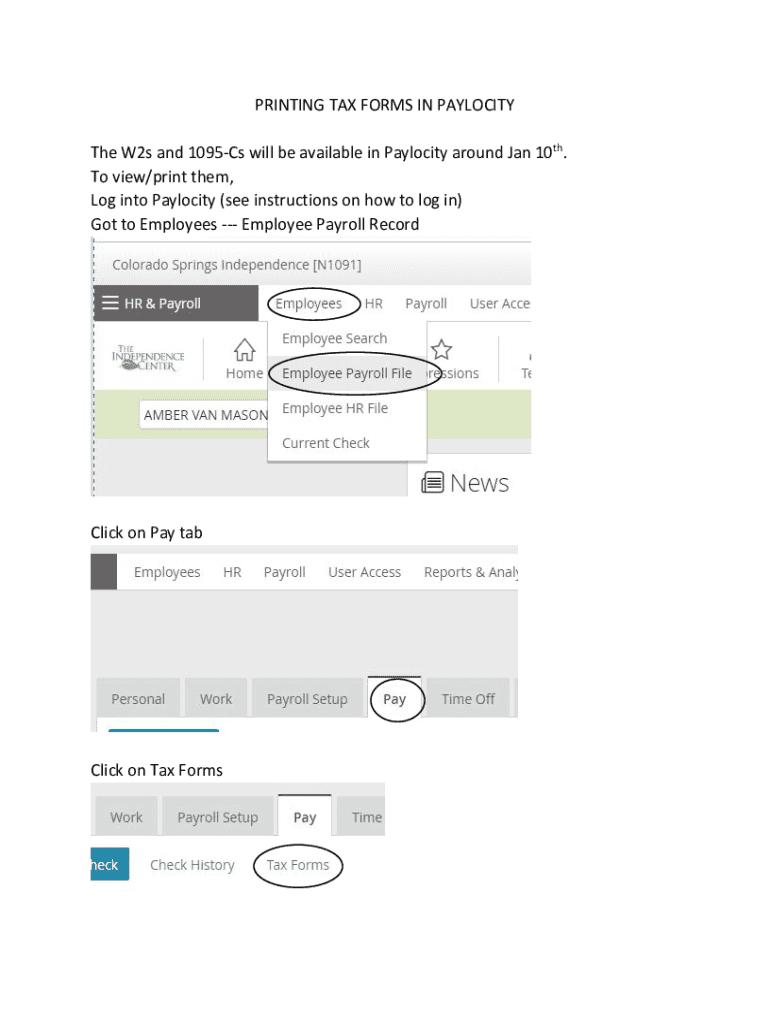 Get the free PRINTING TAX FORMS IN PAYLOCITY The W2s and 1095-Cs will ...