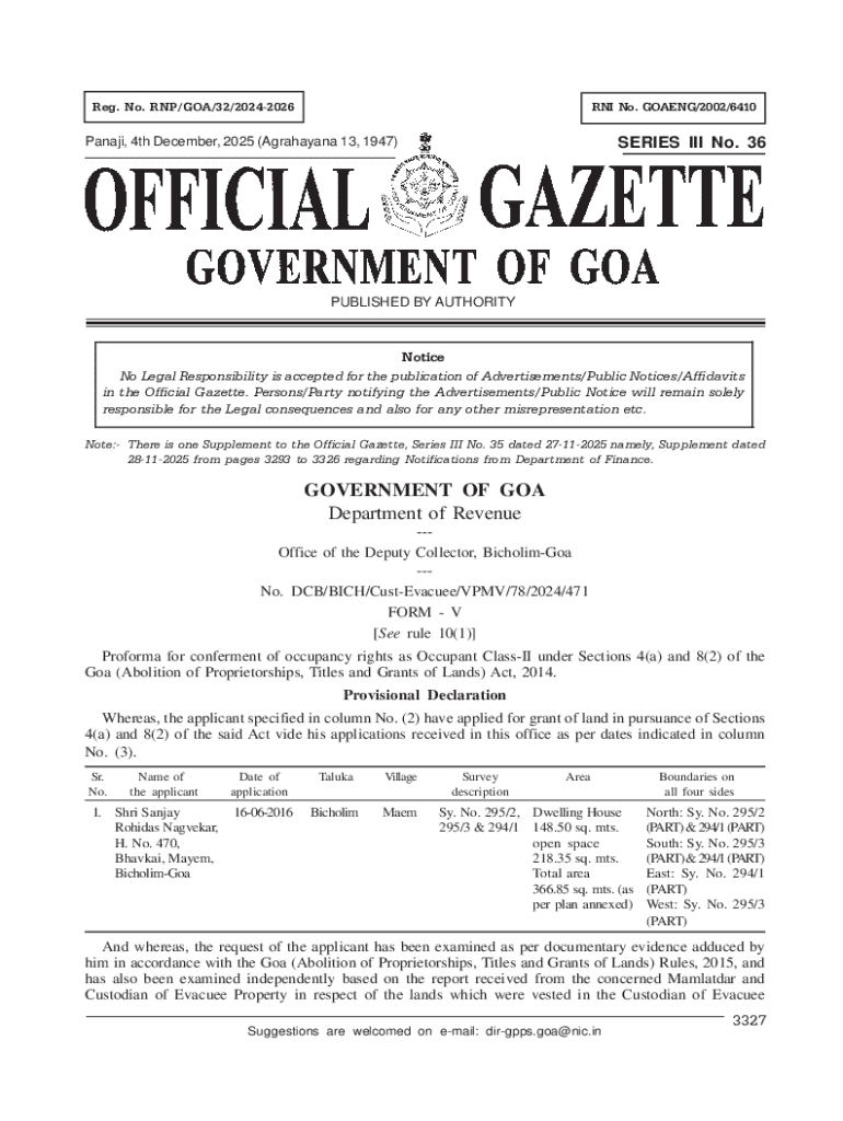 Get the free Note:- There is one Supplement to the Official Gazette, Series III No