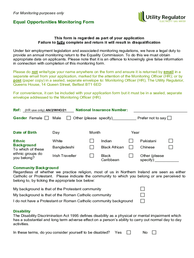 Get the free Equal Opportunity Monitoring Form: Is this real or junk mail/ ...