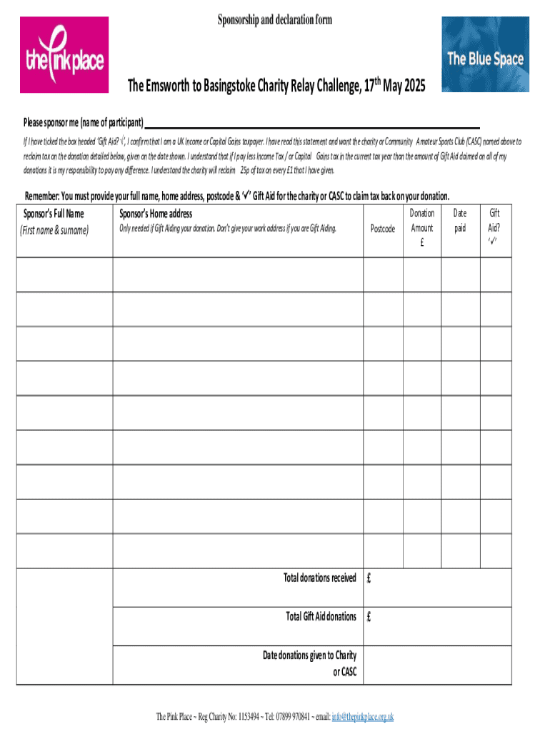 The Emsworth to Basingstoke form serves a pivotal role in the annual charity event connecting these two charming locations. Designed for both individual participants and teams, this form helps streamline registrations, ensuring that the event runs smoothly and efficiently.