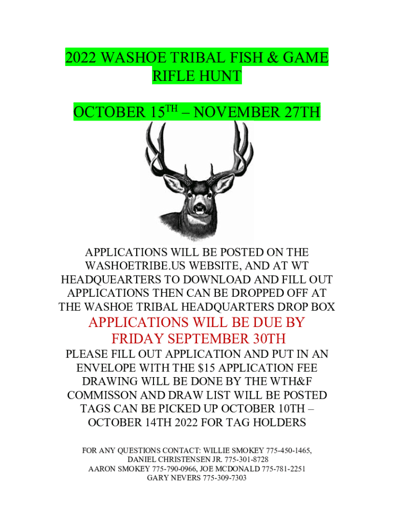 The 2022 Washoe Tribe fish form serves as a crucial document for individuals seeking to participate in the tribe's fishing activities. This form is designed to streamline the registration process and ensure compliance with established regulations. It's significant as it encapsulates the community’s needs and experiences while securing fishing quotas that support sustainable practices.