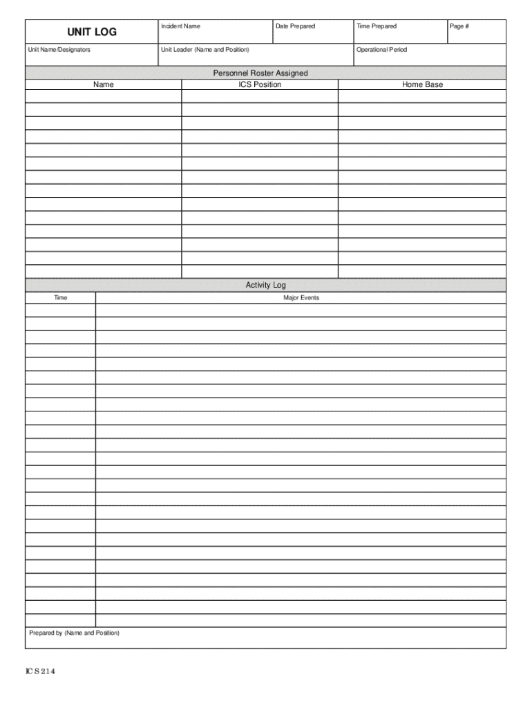 Get the free ICS Form 214 - UNIT ACTIVITY LOG - Salarmycentral.org