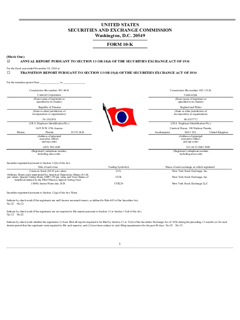 Get the free Form 10-K for Carnival Corp filed 01/27/2025. 10-K filed 01/27/2025