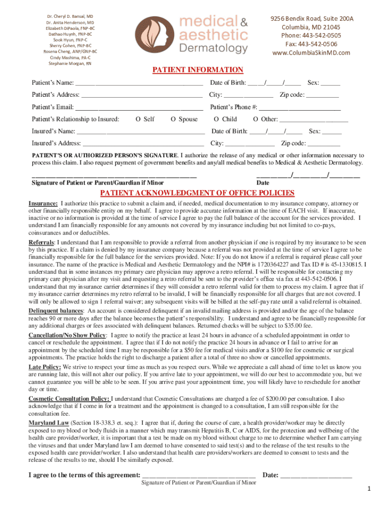 Get the free No Show/Late Cancellation Agreement PATIENT ...