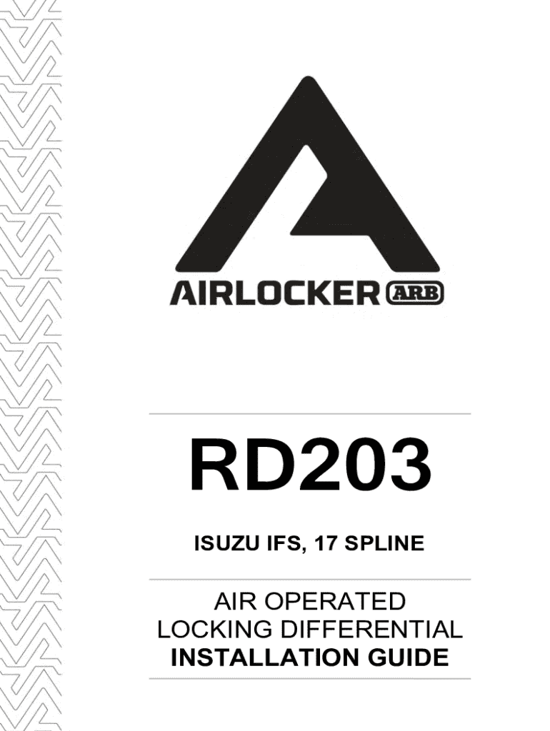 RD203 ISUZU IFS, 17 SPLINEAIR OPERATED LOCKING DIFFERENTIAL INSTALLATION GUIDENo liability is assumed for damages resulting in the use of the information contained herein. ARB Air Locker Locking Differentials