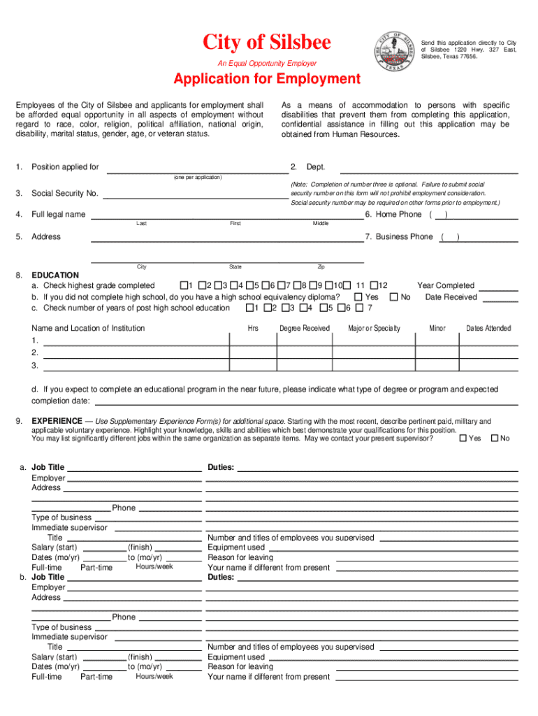 Get the free The City of Silsbee is now accepting applications for the ...
