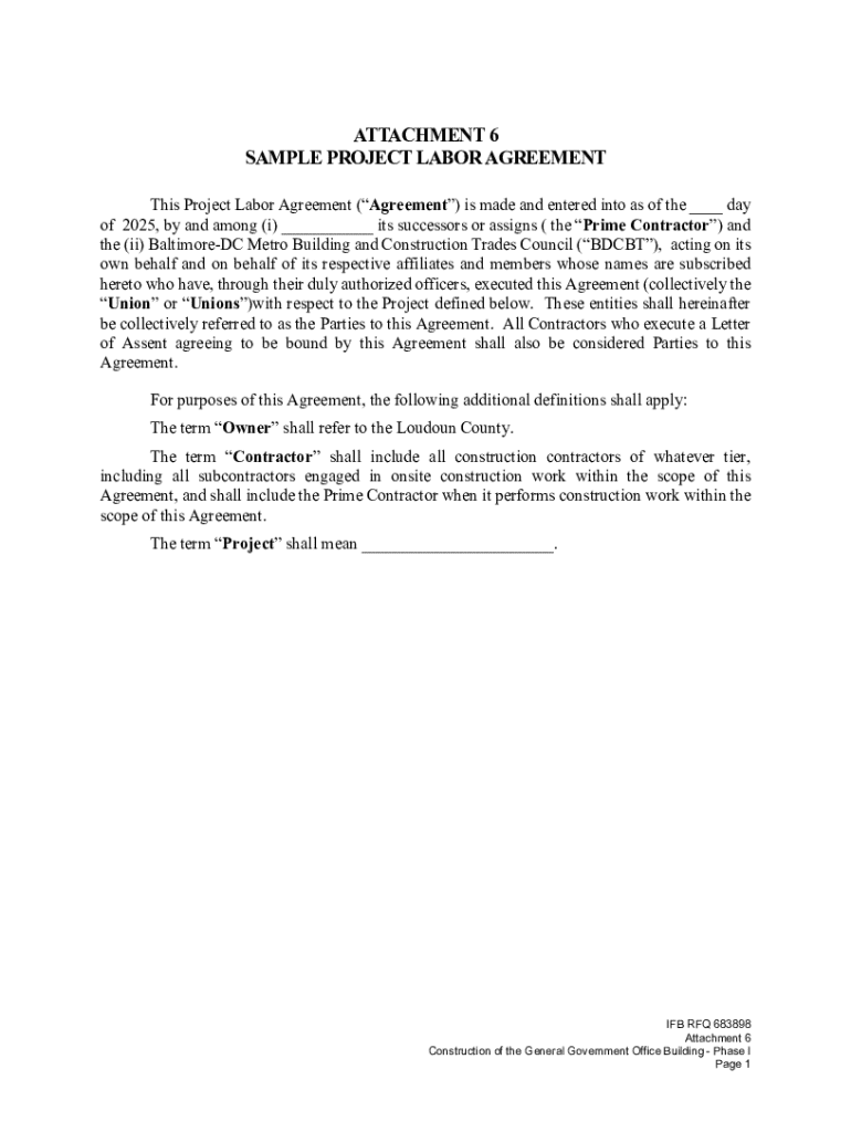 Get the free ATTACHMENT 6 SAMPLE PROJECT LABOR AGREEMENT