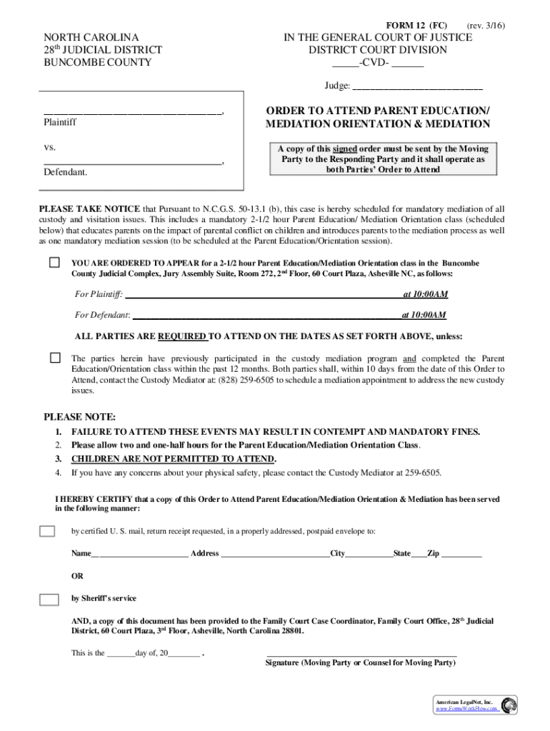 Get the free Form 12 Order To Attend Parent Education/Mediation ...