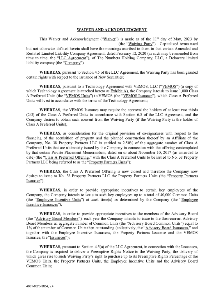 Get the free Form of Preemptive Rights Waiver (VEMOS Issuance + Advisory Board Issuance).docx